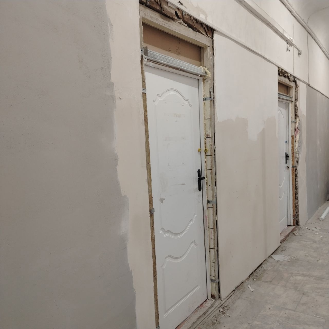 Параллельно начинается монтаж новых перегородок, установка профилей под гипсокартон. Также прокладываются новые системы водоснабжения и канализации.