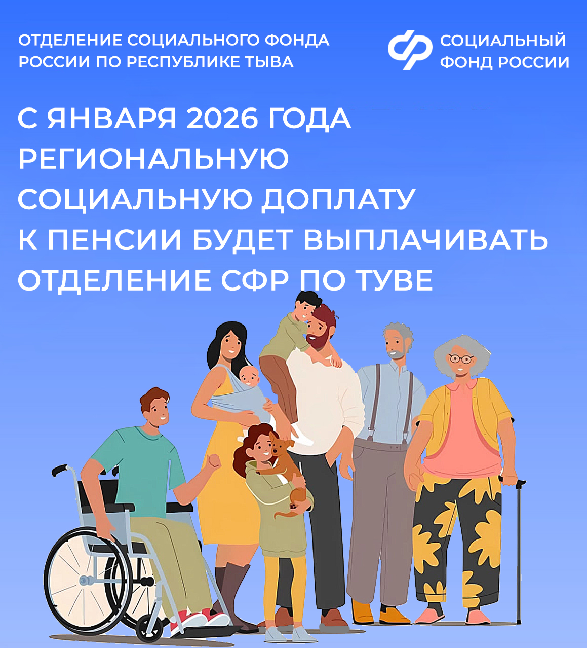 «Отделение СФР по Республике Тыва устанавливает региональную соцдоплату в беззаявительном порядке и с 2026 года начнет ее выплачивать одновременно вместе с пенсией. В январе 2026 года пенсия и доплата поступят отдельно. Уже с февраля выплаты синхронизируются и придут вместе. Пенсионерам не нужно подавать никаких заявлений», — пояснила управляющий Часкал Дараа.
